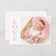 Sweet Fotokarte mit L-O-V-E in rosa Typografie für Ihr kleines Mädchen. Fügen Sie Ihre eigenen Foto- und Geburtsdaten auf der Rückseite ein. So niedlich!