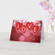 Romantische Illustration mit angehängten Herzen mit "LIEBE"-Buchstaben auf beißigem Hintergrund.
