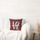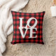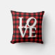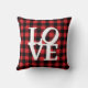 Ein Werfer-Kissen mit einem rustikalen, roten und schwarzen Büffel kariertes Muster mit dem Wort "LIEBE".