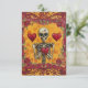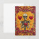 Liebe dich zu Tode. Valentinkarte im mexikanischen Stil. Skelett und Herz