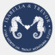 Tief marineblau und weiß gefärbte Aufkleber in der Rücksendeadresse, zugeschnitten auf eine nautische Hochzeit mit einer doppelten Seepferd-Abbildung.