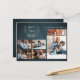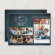 Einfache minimalistische handgeschriebene weiße Typografie auf dunkelmarineblau Winterferien Familie Grußkarte mit fünf Fotos mit handgezeichnet gezeichneten Antlers mit einem saisonalen botanischen Bouquet. ++++++++++ Einfach mit Ihren Fotos, benutzerdefinierten Text und Signatur auf beiden Seiten personalisieren.