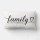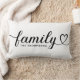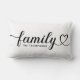 Moderne und stilvolle Kissendesign mit individueller Lumbalform-Kissengestaltung mit einfacher und minimaler "Family" Typografie mit blüh- und Herzdetails. Personalisieren Sie den unten stehenden Großtext mit einem Mono oder Jahr festgelegt. Die Farben Schwarz und Weiß können geändert werden.