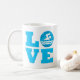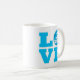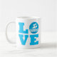 Eine unterhaltsame, einzigartige Kaffeemaschine für Schwimmer, Schwimm- und Tauchlehrer und Schwimmfreunde. Die LIEBE ist fett gedruckt und das berühmte Schwimmsymbol anstelle des O. Das Schwimmsymbol wird mit coolem Wasser im Hintergrund aktualisiert. Schenken Sie den Badefreunden eine süße Geschenkidee!