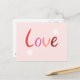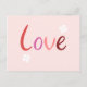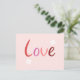 Das Wort Liebe in handgeschriebenem Drehbuch in Rot und Pinks auf einem Baby rosa Hintergrund mit Herzen oben rechts und unten verlassen, um Blätter eines Kleeblatts oder Blume zu erstellen.