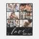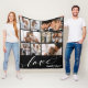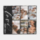 Moderne Liebe Script Foto Collage Keepake Blanket. Design beinhaltet 9 Fotos auf schwarzem Hintergrund, das Typografie-Skript ''Liebe'' in trendy Schrift und Ihre Namen. Perfekt als Geschenk für den Valentinstag, Weihnachten, für Neuvermählte oder als Sake.