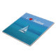 Weiße Segel gegen ein absolut Türkismeer. Das Hinausgehen auf das Wasser in einem Segelboot unter einen wolkenlosen blauen Himmel ist ein Seerezept während eines perfekten Tages.