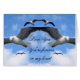 Möwen fliegen im Spiegelkunstdesign unter dem bewölkten blauen Himmel. Sie können diese Postkarte für jeden Anlass anpassen.