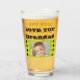 Bier Glass Geschenkidee für Grandad. Schwarz und Limon, mit einem Foto des Enkelkindes vorne und einem weiteren hinten. Wir haben dich Liebe.