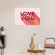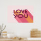 Liebe Sie Liebe Zitat Poster. Modernes Design mit einer Retro-Farbpalette I Liebe You Poster, macht ein perfektes Geschenk für Ihre Freundin, Freund, oder besondere jemanden. Die rosa, orangefarbenen und gelben Streifen machen die Buchstaben zu einem Pop mit einer aufregenden Nachricht. Geben Sie dieses Geschenk für den Valentinstag oder als Wohngestaltung Überraschung für Ihren Lieben.