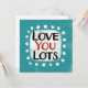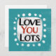 "Liebe You Lots" ist ein lustiges Textdesign mit weißer Akzent-Form, umgeben von weißen, weißlichen, weißgestrichenen Punkten.