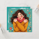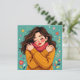 Eine niedliche, skurrile Kunsthandwerkskarte mit einem Mädchen in einem warmen, gemütlichen Pullover, das sich selbst umarmen lässt. Denken Sie daran, dass die Selbst-Liebe bei dieser hübschen Illustration wichtig ist.