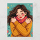 Eine niedliche, skurrile Postkarte im Volkskunst-Stil, um in Touch mit einer Freundin oder einem Familienmitglied behalten, die in einem gemütlichen, warmen Pullover sitzt und sich umarmt. Denken Sie daran, dass die Selbst-Liebe bei dieser hübschen Illustration wichtig ist.