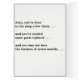 Eine Karte für eine Frau, die sich im Laufe der Jahre verändert haben mag, deren Wert aber nur geschätzt wurde. ... von einem Mann, der sich hinwegbewegt und die Analogie zu weit geht.