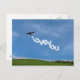 Sagen Sie jemandem, dass Sie sie mit dieser phantastischen Skywriting-Postkarte Liebe. Die Worte "Liebe du" werden im Himmel durch Flugzeugrauch geschrieben.