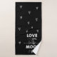 Liebe Sie zum Mond und zurück Hübsches Schwarz-weißes Badetuch Set. Auf einem schwarzen Hintergrund , das Zitat "LIEBE SIE ZU MOON & BACK" in Weiß in einer stilvollen Typografie geschrieben. Dieses Niedliche und stilvolle Set macht es zu einem perfekten Geschenk für einen Liebsten in dieser festlichen Saison.