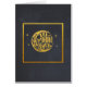 Eine skurrile niedliche Grußkarte. Ein niedliches Sprichwort: Liebe zum Mond und zurück. Romantische Typografie mit einem Goldmond in einem niedlichen, sonderbaren Schriftart. Der Hintergrund ist eine schwarze Chalkboard-Textur.