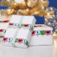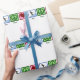 Ein niedliches Skigeschenk mit einem hübschen Schild, Herz und einer Skipiste mit Skifahrer im Winterschnee.