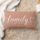 Moderne und stilvolle Kissendesign mit individueller Lumbalform-Kissengestaltung mit einfacher und minimaler "Family" Typografie mit blüh- und Herzdetails. Personalisieren Sie den unten stehenden Großtext mit einem Mono oder Jahr festgelegt. Die Farben weiß und gelb und orange können modifiziert werden.