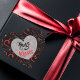 Niedliches personalisiertes, herzförmiges Aufkleber mit rot-weißem Doodle-Herz und Liebe-Drehmuster auf schwarzem Hintergrund mit durchsichtigem grauem Herz mit dem Text HUGS AND KISSES. Der Text ist vollständig anpassbar.