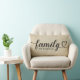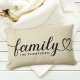 Moderne und stilvolle Kissendesign mit individueller Lumbalform-Schrift, die schlicht und minimalistisch in Schwarz gehalten ist und blühte- und Herzdetails enthält. Personalisieren Sie den unten stehenden Großtext mit einem Mono oder Jahr festgelegt. Ein rustikaler Leinenhintergrund ergänzt die Wohngestaltung im Bauernstil um Vintage Anziehungskraft.