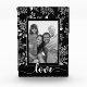 Dieses charmante Foto-Hotel mit seinem beliebten Foto liegt inmitten eines wunderschönen, schwarzen Untergrundes mit weißem Blattwerk, Punkten und Beeren. Ändern Sie die Hintergrundfarbe und den Rahmen, um Ihrem Foto zu entsprechen. Gut als Geschenk oder um Ihr Lieblings-Foto in Ihrer eigenen Zuhause zu zeigen.