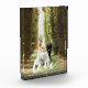 Mit diesem modernen freistehenden Acrylblock können Sie Ihre Hochzeit, Ihre Hochzeitsreise oder einen besonderen Augenblick genießen. Fügen Sie Ihr Lieblings-Vertikal- / Portrait-orientiertes Foto mit "Liebe" überlagert in weiß handgeschriebenen Stil moderne Kalligraphie Schrift. Personalisieren Sie mit Ihren Namen und Hochzeitsdatum am Ende.
