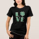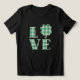 Liebe St Patrick's Day Green Kariert Kleeblatt T - Shirt zeigt den Text "Liebe" in modernen grün-weiß karierten Typografie mit einem Kleeblatt. Ideal für den Tag des Heiligen Paddy.
