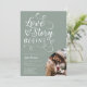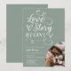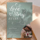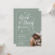 Eine Liebe beginnt! Feiern Sie die Braut, um ein großer Tag zu werden! Unsere Brautdusche-Einladung enthält eine Schriftzeichen-Schriftzeichen-Schrift und ein halbes Foto auf Salbei-Grün.