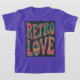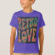 Das Design des T - Shirt zeigt die Phrase "Retro Liebe" in fett, kontrastfarben, Set vor einem psychedelisch wirbelnden Hintergrund. Das wirbelnde Muster erinnert an Nostalgie und Vintage Ästhetik, die das Retro-Thema perfekt prägen. Die lebhafte Farbpalette verleiht dem Design eine spielerische und energetische Touch, die das Design auffällig und optisch ansprechend macht.