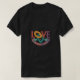 Das Design des T - Shirt "Liebe umkreist" zeichnet sich durch einen spielerischen Schriftart aus, der in einer kreisförmigen Anordnung angeordnet ist und eine optisch ansprechende und aussagekräftige Komposition schafft. Die Herzen sind miteinander verflochten, um den Kreis zu bilden und symbolisieren die allumfassende Natur der Liebe. Die ästhetische Gestaltung ist fröhlich und erfreulich, ideal für diejenigen, die gewollt haben, ihre Liebe und Wertschätzung für andere zum Ausdruck zu bringen