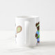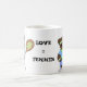 Grosses Tennis Sprichwort, Liebe = Tennis! Gute Tasse für einen Tennisspieler. Cooler Teddybär in seiner Tenniskleider mit einem Schläger und einem Tennisball, der auf dem Platz zum Handeln bereit ist.