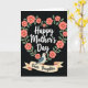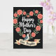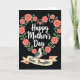 Diese Grußkarte zeigt einen tiefschwarzen Hintergrund, der die zentrale Botschaft mit einem romantischen, pflegenden Glanz hervorhebt ❤️. In der Mitte erscheinen die Worte „Happy Mother's Day“ in fließender weißer Schrift, zentriert und leicht lesbar. Den Text umgibt ein herzförmiger Kranz aus grünen Blättern und schlanken braun-goldenen Stielen, die gleichmäßig angeordnet sind, als würden sie die Botschaft sanft umarmen. Korallenrosa Blumen zieren den Kranz, ihre sanft schattierten Blütenblätter verleihen einen zarten, liebevollen Touch wie ein Bouquet, das mit einem stillen Lächeln überreicht wird 🌼. Unter dem Kranz sitzt ein kleiner Vogel in sanften weißen und gedämpften blaugrauen Tönen ruhig, als ob er die Grußbotschaft bewacht. Der Vogel hat einen hellorangen Schnabel und passende Füße, was einen süßen kleinen Farbklecks vor dem dunklen Hintergrund darstellt. Direkt darunter entfaltet sich ein cremefarbenes