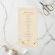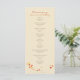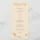 Ein wunderbar romantisches und gemütliches Hochzeitsprogramm mit einem Blätter, das in gelber, roter und orangefarbener Form in den Herzen liegt, und ein paar dieser Blätter werden von einer milden Brise verführt. Lieblich für eine Herbsthochzeit!