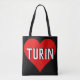 Damentasche. Grosses rotes Herz und die Stadt Turin. Cooles Taschendesign.