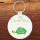Liebe Turtle Schlüsselanhänger. Anpassbarer Schlüsselanhänger hat eine niedliche grüne Liebe Schildkröte mit den Worten, die ich Sie Liebe.