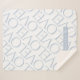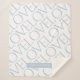 Die Sherpa-Decke des Liebe-Ehepaares. Sein und ihr Name im klassischen Blocktext innerhalb eines kleinen Rechteckrahmens auf einem typografischen Hintergrund der Liebe. Hellblau und weiß.