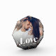 Mit diesem speziell geformten Acrylblock, der perfekt für Paare geeignet ist, können Sie Ihre Hochzeit, Ihre Hochzeitsreise, Ihre Hochzeitsreise oder einen besonderen Augenblick genießen. Fügen Sie ein beliebtes Foto hinzu und passen Sie Ihre Namen ganz unten an. "Liebe" erscheint als weißes Textüberlagerungsbild in modernen Schriften.