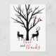 Diese Winter-Liebe und Dankeschön-Karte verfügt über eine Silhouette Doe und Buck Reh Paar. Sie sind unter einem geröteten Baum mit einem roten Vogel stehend. ^