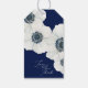 Nautical Boutique Co.'s minimalistische marineblau-weiße Liebe und Dank Gastgeschenk Hochzeit Tags Design verfügt über ein nautisches Seil in einem unendlichen Knoten und moderne fließende handgezeichnete Typografie. Das minimalistische Design ist Set auf einem knalligen, weißen Hintergrund. Die Rückseite des Hotels ist mit blauen, wasserfarbenen Anemonenblumen und Set auf dunkelmarineblau-blauem Hintergrund gestaltet. #Nautical #Wedding #Favorits