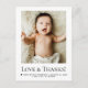 Teilen Sie Ihre Freude mit dieser Liebe und dank Baby Foto Birth Announcement, mit einem hochgeschätzten Foto, dem Namen Ihres Babys und einer maßgeschneiderten herzlichen Botschaft - ideal, um die Ankunft Ihres kleinen zu verkünden und Dankbarkeit zu äußern.