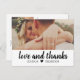 Stilvolle Hochzeit danke Ihnen Post-Card-Vorlage zeigt "Liebe und Dank" in einem rustikalen chic handgeschriebenen Skript-Schriftart mit individuellem Monogramm und einem Landschaft-Foto (1 x 2 Verhältnis) der Braut und Bräutigam auf der Vorderseite, und kleineren quadratischen Foto mit individuellem Text, der auf der Rückseite personalisiert werden kann. Klassische Schwarz-Weiß-Farbschemata können komplett angepasst werden.
