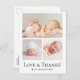Dank der einfachen Liebe und dank Typografie Foto Grid Baby Dusche danke ich Ihnen postcard! Diese Karte mit einem klaren Design und einem Foto-Gitter-Layout ist ideal, um die reizvollen Momente Ihrer Kleinen zu zeigen, während Sie sich bei Freunden und Familie bedanken. Eine herzliche und moderne Art, Ihre Wertschätzung zu teilen. Drei Fotos vorne in einem sauberen und frischen Stil mit Babyname und Geburtsstaten. Symbol für Herz-Detail ©lddesignloft Kontaktieren Sie info@lddesignloft.com wenn Sie Hilfe bei dieser Vorlage benötigen. Ein wunderbarer Weg, um Ihren Baby Duschgästen zu danken, sobald das Baby geboren ist.