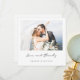 Dieses schlichte Foto Hochzeitsgeschenk dank der flachen Vorlage verfügt über ein sauberes, modernes Design. Wir haben ein modernes Drehbuch in schwarz gewählt, für 'Liebe und danke' auf der Vorderseite. Dieser Teil des Designs kann nicht verändert werden. Aber Sie können die Farbe und den Schriftart eines beliebigen anderen Textes ändern, um Ihren Stil zu Anzug. Wir haben den Hintergrund auf beiden Seiten als transparent Set, sodass die Grundfarbe einfach die Farbe des Papiers ist. Sie können dies auf einer oder auf beiden Seiten ändern, indem Sie stattdessen eine Farbe auswählen. Auf der Rückseite haben wir Ihnen einen Platzhalter-Text hinzugefügt, der durch Ihre eigene Nachricht ersetzt wird. Die Standard-Textfarbe ist schwarz, Sie können dies jedoch ändern, wenn Sie eine andere Farbe bevorzugen. Das ist die gleiche Farbe, die wir für Ihre Namen auf der Vorderseite verwendet haben. Nachdem Sie unseren Platzhaltertext gelöscht haben, können Sie sich entscheiden, einfach das hintere Leerzeichen verlassen, sodass Sie eine handgeschriebene Nachricht mit Ihren Signaturen hinzufügen können. Vergessen Sie in jedem Fall nicht, den gesamten Platzhaltertext sowie unser Beispiel-Foto zu entfernen! Benutzen Sie die intuitiven Design-Tools und Ihr Lieblings-Foto und Ihre Inspiration, um diese maßgeschneiderte Hochzeitskarte zu personalisieren und sie einzigartig zu machen!