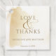 Elegante Hochzeit (oder jedes andere Ereignis) begünstigen das Design von Tags mit wunderschönen Metallpinselstrichen in goldgelben Metalltönen und dem Satz "Liebe und Dank" in wunderschöner, moderner Blocktypografie. Personalisieren Sie dieses Design mit zwei Textabschnitten auf der Vorderseite und zwei anderen auf der Rückseite. Eleganter, einfacher Stil. Hinweis: Typografie ist nicht in realer Folie, sondern in goldener Farbe gedruckt. Teil unserer "Elegant Calligraphy Minimalistisch Wedding" Kollektion mit einer Vielzahl von Produkten zur Koordination.