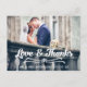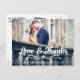 LIEBE UND DANKE TYPOGRAFIE DANKE IHNEN POSTCARD. Design von Elke Clarke© für MonogramGallery, gedruckt von Zazzle. Senden Sie Ihre Hochzeit Dankeschön-Nachricht als frische Weds an Ihre Freunde und Familie mit diesem Retro, danke Ihnen Hochzeit Foto Postcard mit den Worten "Liebe & Dank" geschrieben in einem weißen fett handschriftlich Typografie-Skript Text-Overlay. Ersetzen Sie das Beispiel-Foto durch das eigene. Fügen Sie Ihre persönliche Dankeschön-Nachricht auf der Rückseite oder verlass leer und Hand schreiben Sie Ihre Nachricht persönlich. Andere Farben sind verfügbar.