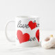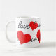 Liebe Text und rote Herzen Kaffee Tasse.