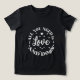 "Liebe und Hunde" Themed T - Shirt Tri-Blend Shirt. Weißer Text, Liebe-Nachricht, Hunde lieben Kleidung. Ein schwarzer T - Shirt mit einer weißen, kreisförmigen Grafik mit dem Satz "ALL YOU NEED IS LIEBE AND HUNDE", hervorgehoben durch Herz und Pfotendruck. Dieses Kleidungsstück spricht Hundefreunde an und fördert die Liebe als essenzielle Stimmung.