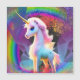 Schönes Gemälde mit einem weißen Einhorn, viel Liebe und einem farbenfrohen Regenbogen.