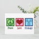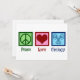 Frieden Liebe Urologie. Eine coole Urologistenkarte für einen Urologen-Arzt oder eine Krankenschwester mit einem Friedenszeichen, Herz und Bild einer Blase. Tolle Urologie Departement Urlaubskarten.